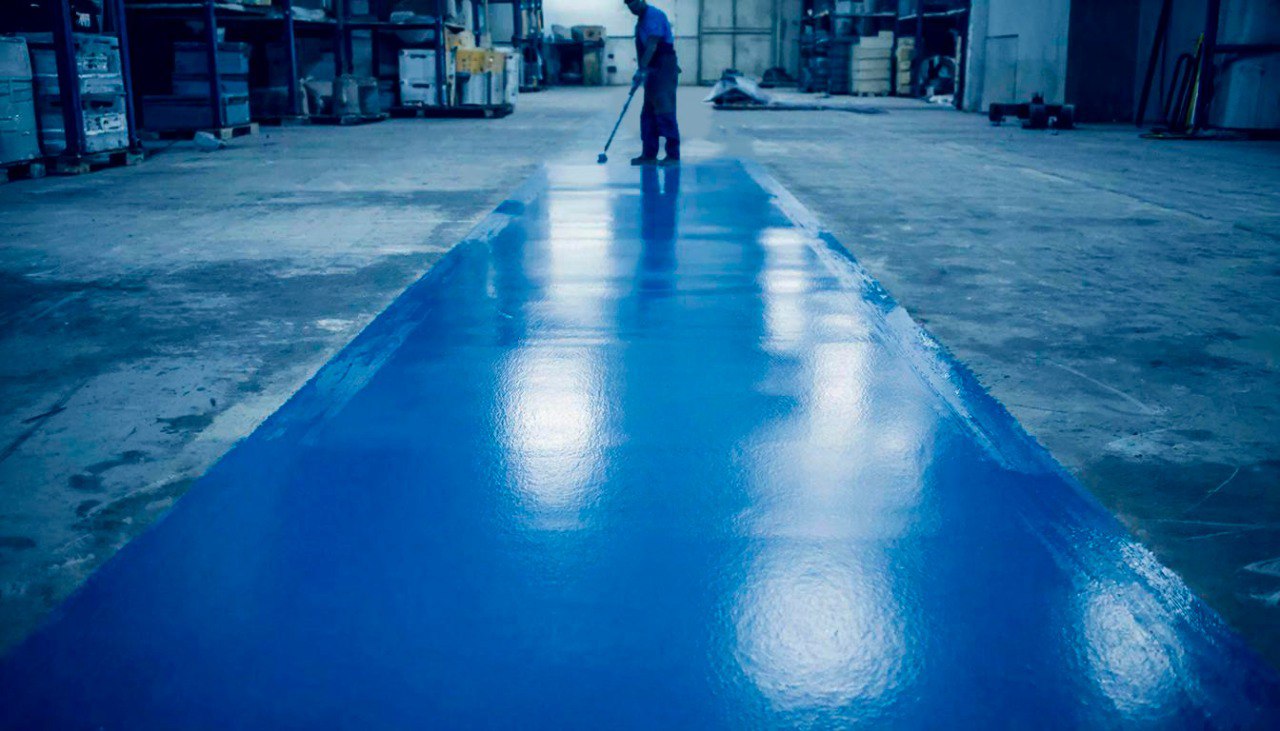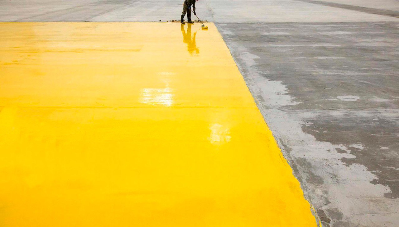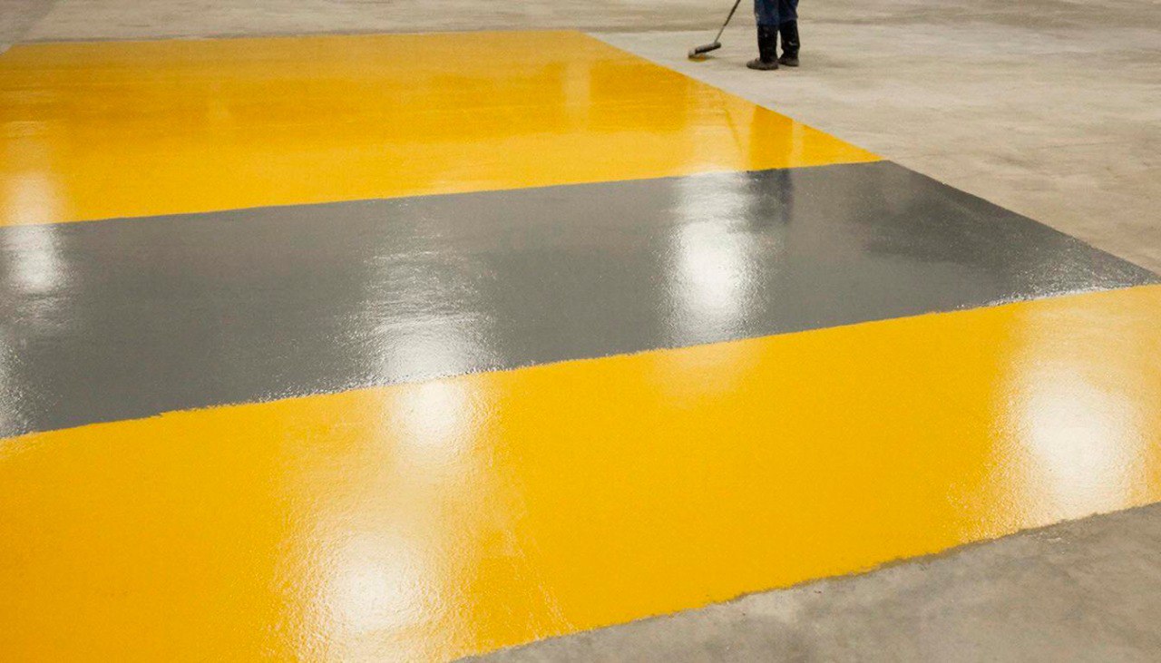 Окраска пола промышленными красками один из самых бюджетных финишных полов. Осуществляется на подготовленное основание с целью защиты верхнего слоя покрытия и придания ему декоративных свойств (любые цвета) и разметки. Часто используется после ремонта старых бетонных полов на складах, производствах, торговых и промышленных помещениях. Стоимость нанесения варьируется от 1000 до 1500р/м2.